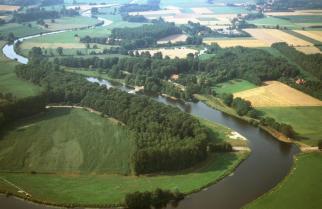Text zum Bild: Die Obere Ems im Bereich der Schleuse Listrup mit der Rauhen Rampe und der Panzerdurchfahrt (Foto: WSA Rheine)