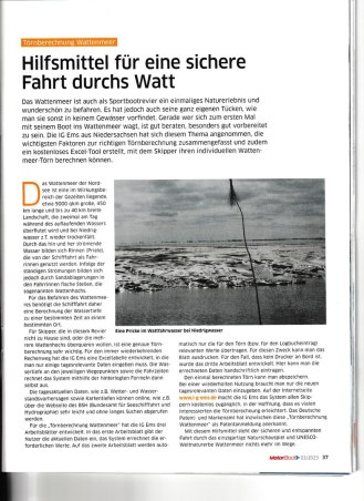 Törnberechnung Wattenmeer - Die Fachzeitschrift MotorBoot berichtet in ihrer Ausgabe 03/23